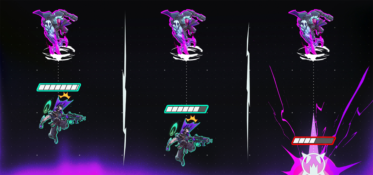 Zásah soupeře na plném zdraví ho sice shodí dolů, ale poskytne mu prostor znovu získat kontrolu.